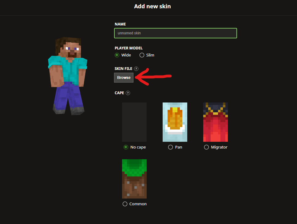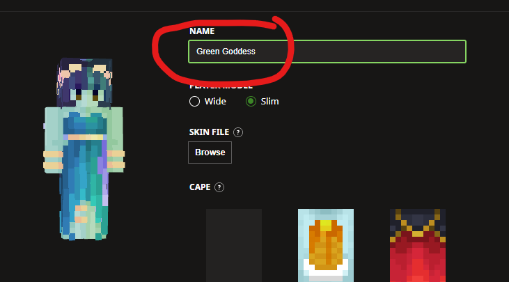Once you select your downloaded skin, it will appear here. Give it any name you like.