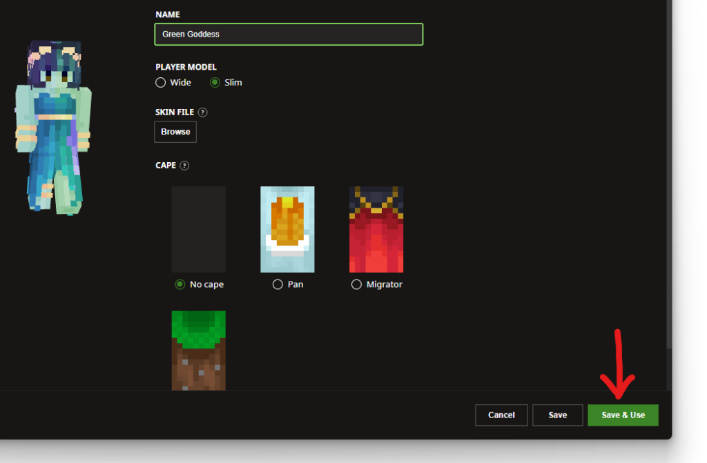 Once you’ve saved a new skin, it will remain in your Library. You can switch to any skin in your Library by hovering over it and clicking Use.