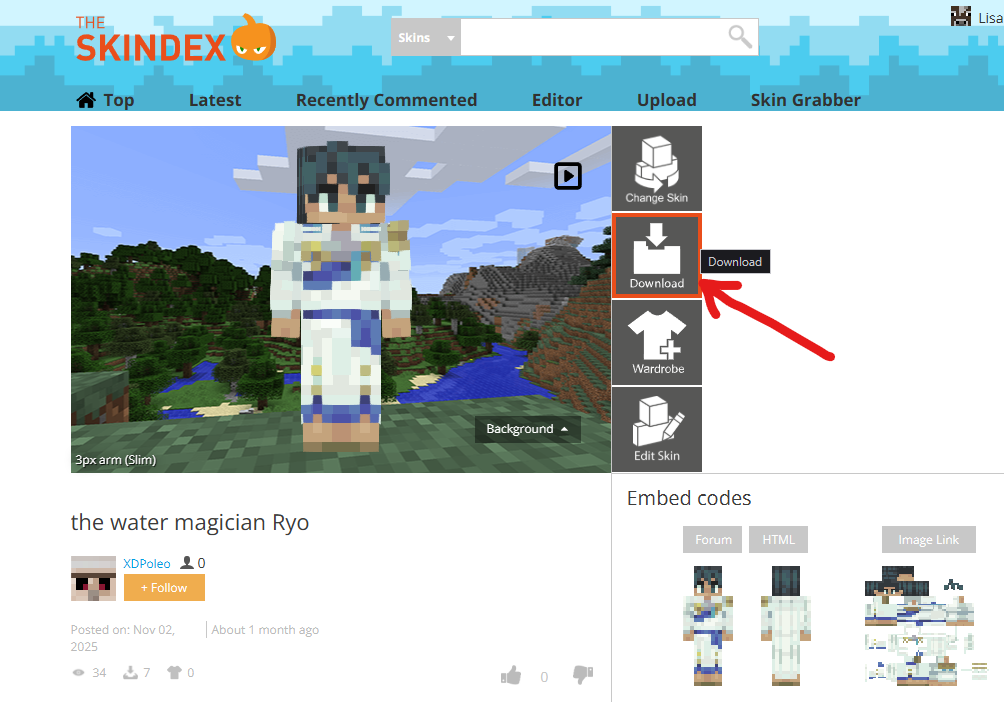 Once you find a skin you like, click on it and download it to your computer.