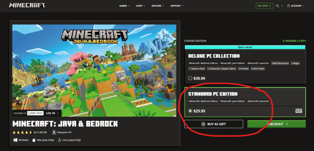 I strongly recommend getting the Standard PC Edition. You DO NOT need Minecoins… like ever.