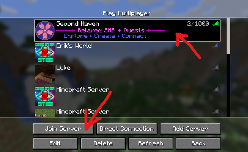 Back on the Multiplayer screen, select the Second Haven server. Then click on Join Server.